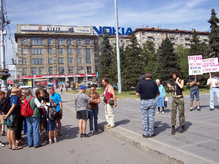 Пикет левых активистов на пл. Ленина в поддержку народа Южной Осетии 9 августа 2008 г.