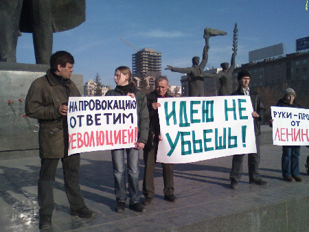 Пикет протеста 2 апреля 2009 г. против взрыва памятника Ленину в Ленинграде