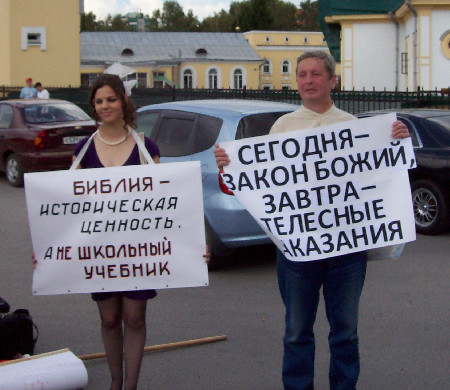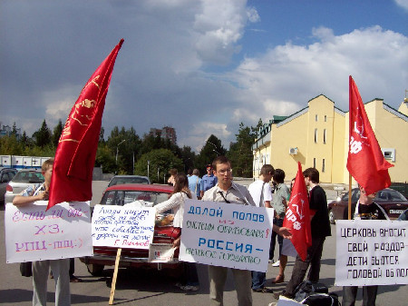 Пикет против преподавания религии в школах 23 августа 2009 г.