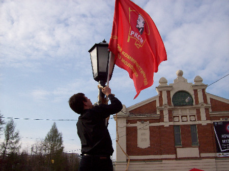 флаги АКМ, РКРП, РКСМ, а также либералов из "Солидарности"