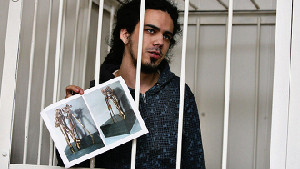 15 мая сотрудниками Центра по противодействию экстремизму (бывший УБОП, далее – Центр Э) был задержан новосибирский художник, один из организаторов т.н. «монстрации» Артем Лоскутов. При обыске у него были «найдены» наркотики. Лоскутов и его защита категорически утверждают, что наркотики были подброшены. Причем в этот день Артему Лоскутову звонили из Центра Э и требовали прийти на «беседу», что он сделать отказался, ссылаясь на занятость подготовкой к защите диплома и на то, что понятие «беседа» не предусмотрено законодательством. В ответ ему угрожали и обещали приехать на работу. На работу за ним не приехали, но по дороге домой Артем был задержан сотрудниками Центра Э, его посадили в машину, оттолкнув шедшую вместе с ним девушку, а сумку, которую он нес, отобрали и засунули в багажник. Через 200 метров, заехав во двор, провели обыск, и в извлеченной из багажника сумке «нашли» пакет с 11 гр. марихуаны.