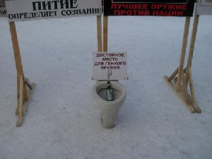 Во-первых, имелись яркие плакаты, вывешенные на специальных стендах. В них очень наглядно показывалось влияние алкоголя на организм людей. Были листовки и наклейки. Видное место занимал унитаз, в котором, по замыслу организаторов, самое место любому алкогольному пойлу.