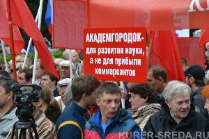 Вчера, 1 сентября, в Новосибирском Академгородке прошел митинг против уничтожения Российской Академии наук, затеянного правительством Путина под видом ее реформы. Несмотря на дождливую погоду, на митинг пришло около тысячи человек, в том числе много молодых ученых и студентов. За два дня до митинга (а это была общероссийская акция) президент РАН Фортов призвал научных работников быть осторожнее с критикой власти, запугивая их тем, что это может ухудшить условия капитуляции… извините, переговоров и диалога с правительством Путина-Медведева. Тем не менее, во многих выступлениях правящий режим подвергался жесткой критике. Причем отрадно, что в Сибирском отделении РАН достаточно решительную позицию заняло и руководство отделения.