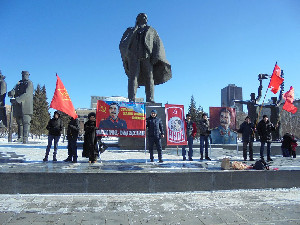 5 марта, в 12.00-13.00, на пл.Ленина у памятника В.И.Ленину, состоялся пикет в честь памяти И.В.Сталина. Организаторами пикета выступили активисты левых коммунистических организаций – ВКПБ, РКРП (Рот Фронт), Железнодорожной ячейки ЛКСМ. В этот солнечный предвесенний день у памятника В.И.Ленину лицом к Красному проспекту мимо проезжающих автомобилей (водители которых приветствовали пикетчиков звуковыми сигналами – народ таким образом выражал свою солидарность с нами) развернулись цветные баннеры с портретом И.В.Сталина – «Сталин – наше знамя боевое!» и зареяли красные знамёна. Наряду с этим молодые активисты ЛКСМ проводили опрос среди подходивших к пикету граждан об их оценке роли И.В.Сталина в истории нашей страны и об их отношении к инициативе установить бюст И.В.Сталину в г.Новосибирске (результаты опроса – положительные). Инициативная группа граждан уже сделала запрос (через депутата) в городской и областной архивы с просьбой предоставить информацию, когда и где стояли памятники И.В.Сталину в г.Новосибирске. После этого мы намерены определить место установки бюста (например – в Сквере Героев Революции), подготовить эскизный проект и представить документы в мэрию на утверждение. МЫ твёрдо заявляем: памятнику И.В.Сталину в Новосибирске – БЫТЬ!