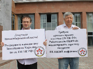 В Новосибирске 11 августа 2016 г., в рамках всероссийской акции, представители и сочувствующие новосибирской региональной организации партии РОТ Фронт провели возле здания Законодательного собрания Новосибирской области пикет в поддержку законопроекта об изменении ст. 134 Трудового кодекса РФ. По итогам акции в канцелярию Заксобрания НСО было передано обращением с призывом поддержать Законопроект, предложенный депутатами Карелии.