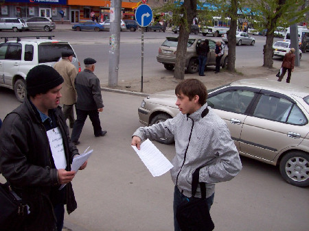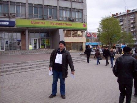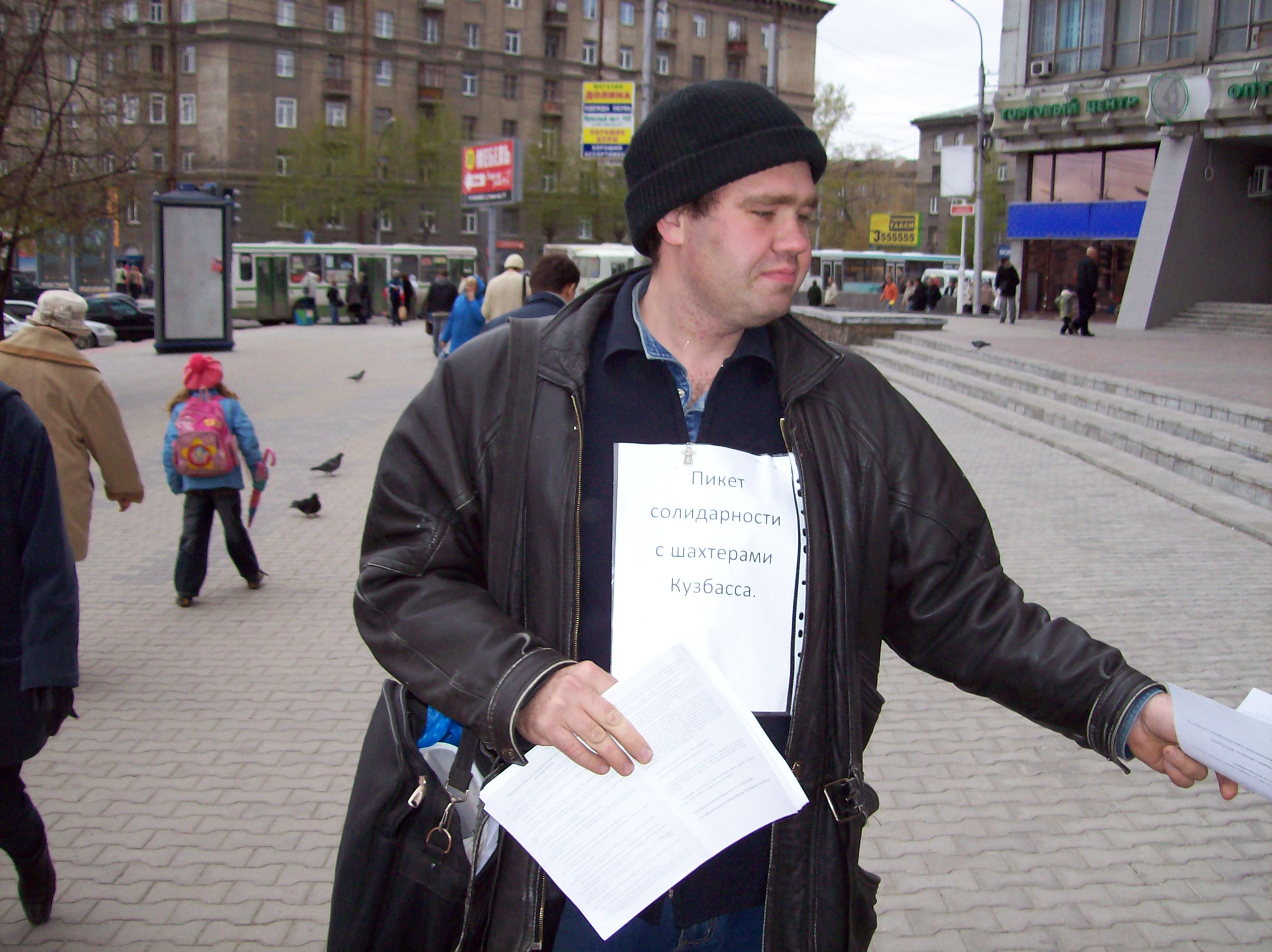 Одиночный пикет активиста АКМ в солидарность с шахтерами Междуреченска 18 мая 2010 г.