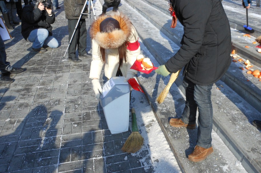 митинг "Сути времени". Красными совками убирают оранжевый мусор - спекуляция на красных идеях в пропутинских целях