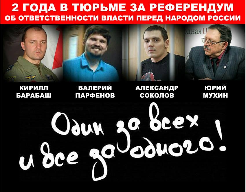 10 августа в Москве были признаны виновными в организации деятельности экстремистской организации Юрий Мухин, Александр Соколов, Валерий Парфенов и Кирилл Барабаш. «Экстремистская организация» - это ИГПР «ЗОВ» (Инициативная группа по проведению референдума за ответственную власть»), что, по версии обвинения, является новым названием запрещенной в 2010 году организации АВН «Армия воли народа».