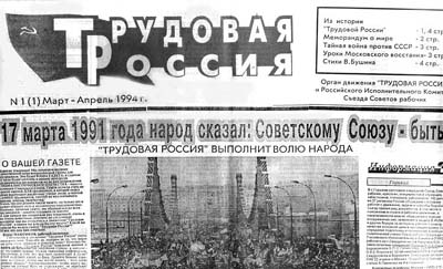 Вышедший в свет 11-й номер «Трудовой России» открывает статья «Настоящий День России – Придёт!» по поводу праздника мифического «освобождения» России, что уже четверть века внедряет буржуазная власть. Этот миф вытекает из другого, большого мифа, будто реставрация капитализма означает движение вперёд, а не падение в дикое прошлое. Однако действительность всё больше раскрывает людям глаза на то, от чего их в реальности «освободили». О том критическая реплика на 1-й полосе «Денег нет, но вы держитесь». Так цинично ответил глава правительства Д.Медведев на возмущённые вопросы граждан «как нам прожить при таком росте цен?» По сути, российская буржуазия устами своего премьера объяснила, как она относится к нуждам нищающего трудового народа.