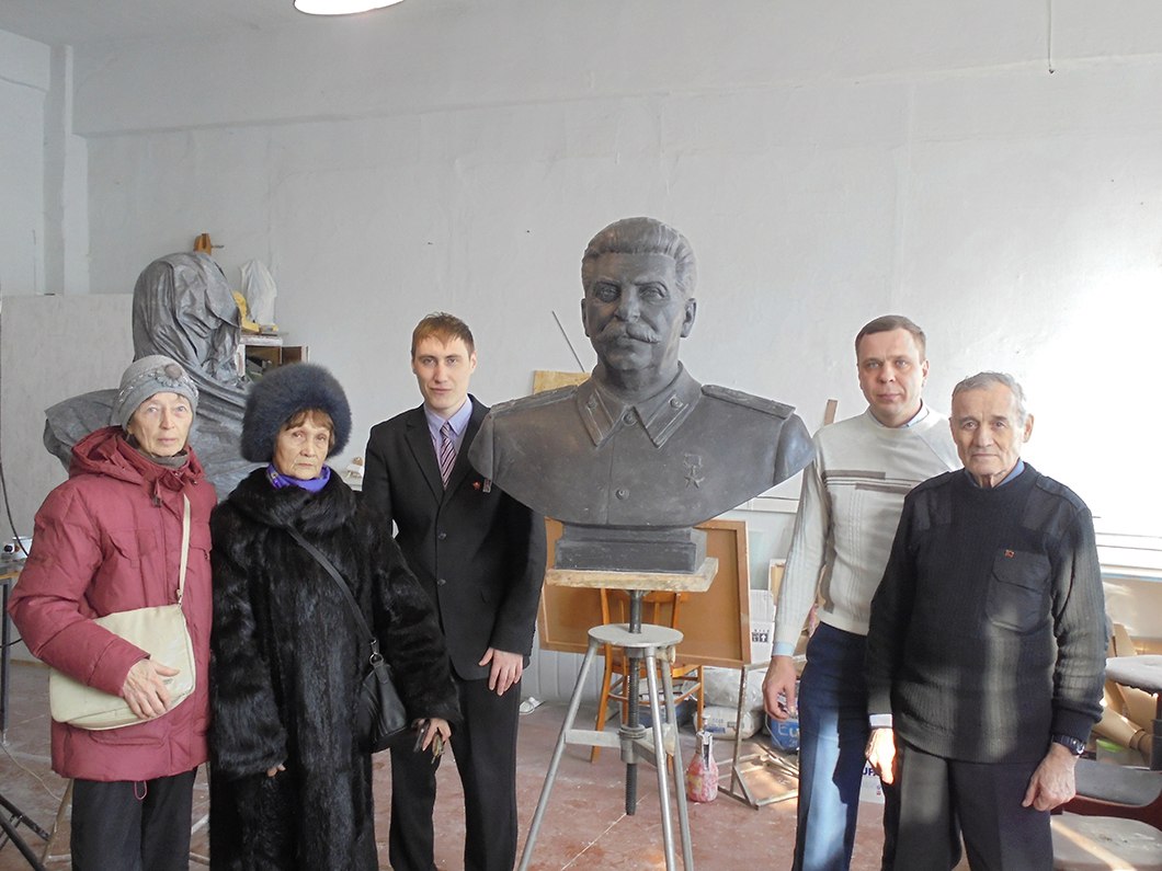 2017-03-04 15:16:35 Бюст И.В. Сталина для Новосибирска Товарищи! Бюст И.В. Сталина практически готов! Из сделанной формы скульптор П.А. Марков вылил бюст Сталина (см. фото). Осталось затонировать бюст под бронзу (первоначальный цвет бронзы с коричневатым оттенком). Скульптор сказал, что на это потребуется ещё две недели. Материал бюста: стеклокомпозит. Размер: высота 73 см, ширина 77 см. Стоимость: 180 000 рублей (работу скульптора мы оплатили). Необходимо ещё также сделать гранитный постамент и орден Победа. Поэтому, мы продолжаем сбор средств на памятник И.В. Сталину (на номер нашей карты Сбербанка: 4276 4400 1012 2445). О наших дальнейших планам мы сообщим в ближайшее время, а также опубликуем очередной отчёт о собранных средствах и затратах.
