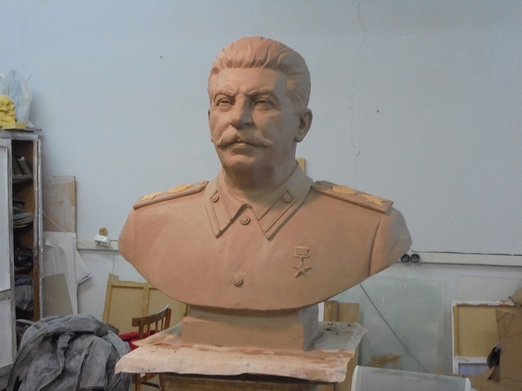 2017-01-18 04:41:21 МОДЕЛЬ БЮСТА СТАЛИНА Новосибирский скульптор Павел Марков сделал из мягкого материала (глины) модель бюста И.В. Сталина, на основе которой (образа) он сделает сам бюст (к концу января). Мы можем внести свои замечания на образ Сталина. Товарищи, высказываемся и участвуем в опросе! Памятник И.В. Сталину мы намерены установить в городе Новосибирске ко Дню Победы 9 мая. Бюст Сталина будет изготовлен из искусственного камня цветом бронзы. Сталин изображён в маршальском кителе со Звездой Героя Социалистического Труда. Размер модели (бюста): высота 730 мм, ширина 770 мм. Выкладываем фотографии, которые мы сделали сегодня при осмотре модели. Читать и комментировать Комментариев: 0