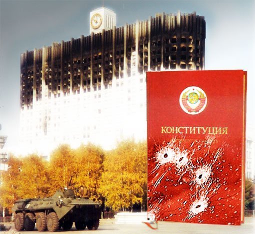 В 1985-1991 годах изменившая стране и народу часть советского партийного и государственного руководства во главе с Горбачевым и Ельциным совершила контрреволюционный переворот строй и разрушила СССР. Началось разграбление общенародной собственности и ее «приватизация» шайкой «реформаторов» и их приближенных. Но оставались еще некоторые препятствия для завершения этого процесса. Во-первых, нарастающий протест народа под руководством лево-патриотических сил, в частности, созданной в 1991 году Российской коммунистической рабочей партии и движения «Трудовая Россия». Во-вторых, позиция Верховного Совета России. Большинство депутатов этого Верховного Совета не были сторонниками социализма и участвовали вместе с Ельциным во всех его преступлениях, в том числе голосовали за беловежский сговор об уничтожении Советского Союза и за капиталистические реформы. Но они выступали за более мягкий путь этих реформ, без тотального ограбления народа, разрушения индустрии и превращения России в сырьевой придаток Запада.