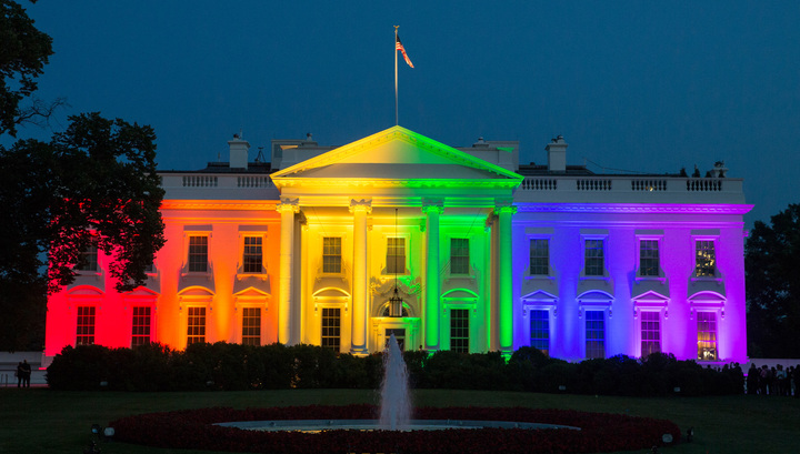 Здание резиденции президента США в Вашингтоне подсветили радужными цветами ЛГБТ-движения в честь легализации однополых браков. Так администрация президента США Барака Обамы приветствовала решение Верховного суда, узаконившего 26 июня однополые браки на территории всей страны.
