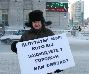 14 февраля 2017 года состоялась очередная сессия Совета депутатов Новосибирска. Перед началом заседания активисты Комитета "Пенсионеры - за достойную жизнь" провели серию одиночных пикетов возле здания Мэрии города. Главное требование: отменить принятое 2 декабря 2016 позорное решение о согласовании роста коммунальных тарифов в Новосибирске на 15%. Многие новосибирцы, проходящие мимо пикетчиков, высказывали поддержку, фотографировали плакаты. Только вот журналисты теле-каналов быстро пробегали мимо в здание мэрии, не замечая протестующих. Хотя, казалось бы, такая картинка для эфира! Но, судя по всему, дана команда: о протестах ни слова! Посмотрим, так ли это, в выпусках вечерних новостей.