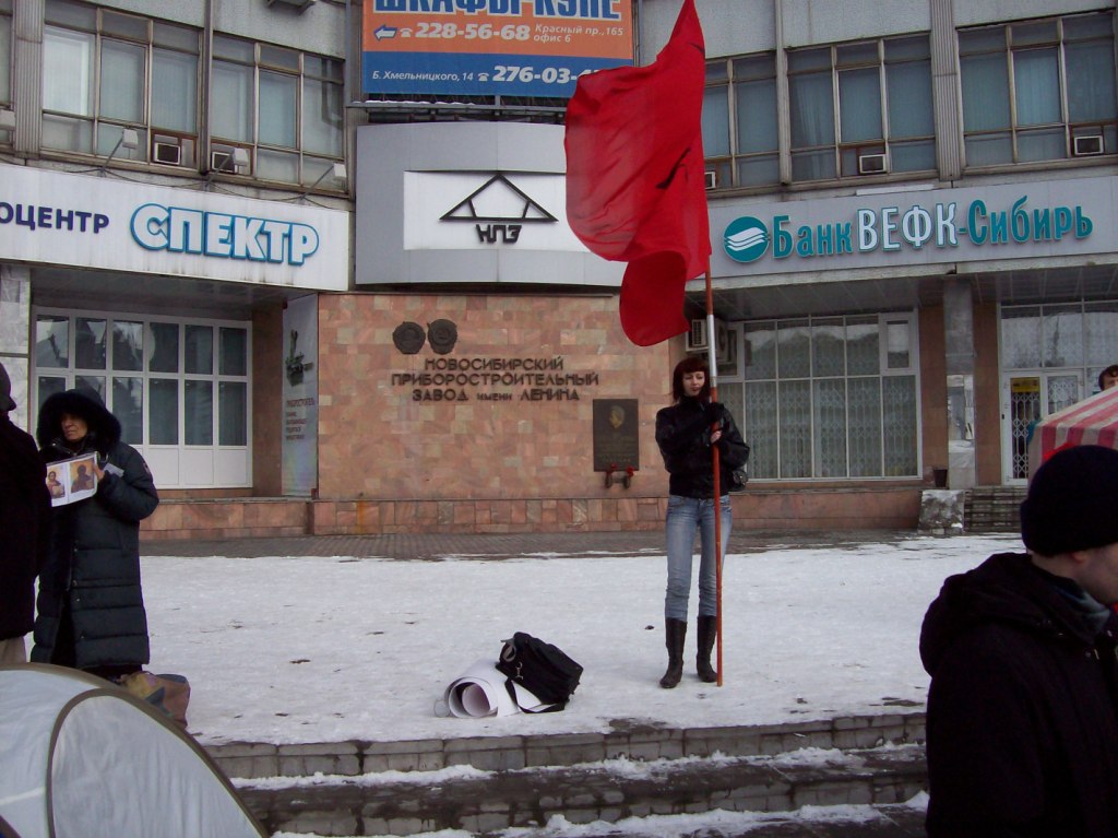 2009-03-15 20:28:27 Сегодня, 15 марта, в Новосибирске прошел пикет «Народ против цен» в рамках общероссийской акции «День гнева». Сегодня, 15 марта, в Новосибирске прошел пикет «Народ против цен» в рамках общероссийской акции «День гнева». В пикете приняли участие Авангард Красной Молодежи, РКРП-РПК, «Трудовая Россия», Левый фронт, движение «ТИГР», а также активисты Социалистического Сопротивления. Было распространено много партийной прессы, листовки, изобличающие антинародную политику власти и бизнеса, призывающие к самоорганизации трудящихся и борьбе за социализм (например, 1 и 2). Была установлена агитационная палатка, на которой, в частности, был размещен плакат, посвященный борьбе рабочих Херсонского машиностроительного завода, с лозунгом «Сегодня Херсон, завтра весь мир!». Также была и другая палатка – с надписью на ней «Доступное жилье для жертв ипотеки». В целом, пикет прошел достаточно успешно. Читать и комментировать Фото Комментариев: 6