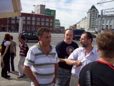 2008-07-16 19:36:56 Сегодня, 16 июля, активисты АКМ, РКСМ, ВКПБ, Трудовой России и КСД провели пикет в Нарымском сквере. Сегодня, 16 июля, представители АКМ, РКСМ, ВКПБ и Трудовой России, а также просто активисты Комитета Солидарных действий провели пикет в Нарымском сквере. В отличие от событий 6 мая (о которых мы сообщали ранее), этот пикет был вполне легальным и прошел без инцидентов. Многочисленные сотрудники милиции, УБОП, ФСБ и прокуратуры вели себя спокойно, участники пикета в этот раз тоже не ставили себе целью перекрыть дорогу или совершить какую-либо иную «акцию прямого действия».