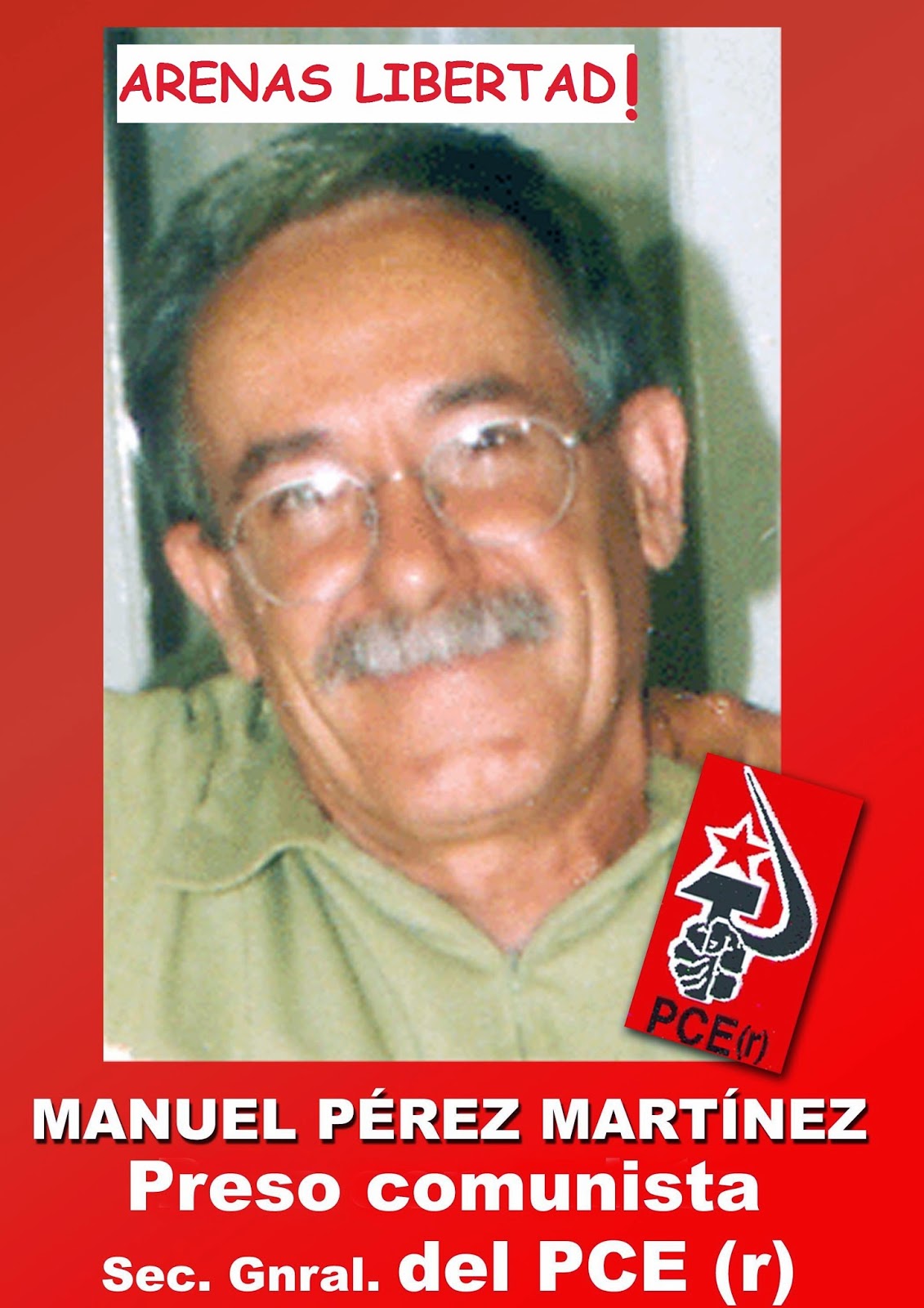 2017-10-03 10:20:59 Поддержим товарища по борьбе! 10 августа в ЦК ВДЗП пришло письмо от испанских товарищей. Они сообщают о существенном ухудшении состояния здоровья политзаключенного, Генерального секретаря PCE(r) Мануэля Переса Мартинеса, Аренаса. Он практически ослеп! После долгой борьбы общественности (в том числе и участников ВДЗП) ему сделали операцию на глазу. Результат операции был неутешительным: произошло заражение прооперированного глаза, инфекция привела к потере зрения, потому что в изоляторе не оказывается необходимая медицинская помощь. По сообщениям его родных, он уже не может ни читать, ни писать.