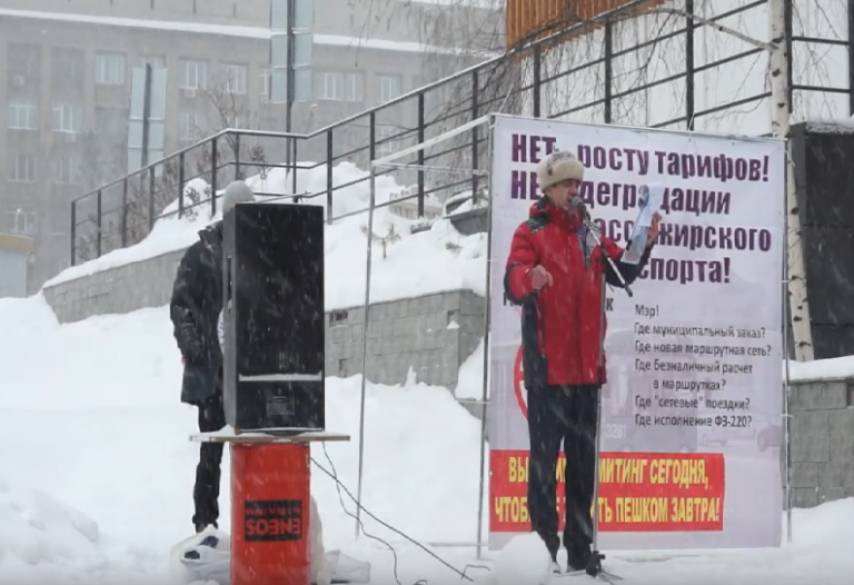 2019-12-31 08:24:58 МИТИНГ ПРОТИВ РОСТА ТАРИФОВ НА ПРОЕЗД (+видео) 21 декабря 2019 года в Новосибирске, в Нарымском сквере, прошел второй за последние две недели митинг протеста против повышения платы за проезд на пассажирском транспорте в городе. Как уже сообщалось, основной претензией к мэрии обозначены экономическая необоснованность роста тарифов, провал реформы пассажирского транспорта города, предполагающей переход на принципы муниципального контракта по ФЗ-220, потворство владельцам маршрутных такси-перевозок, контролирующим большие обороты «серой» наличности.