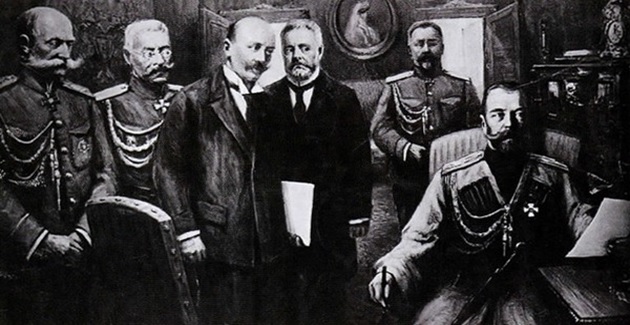 2017-03-15 16:39:27 Николай II отрёкся от престола Царь Николай II во Пскове отрекся от престола. Некоторые трактуют отречение Николая как якобы признак того, что он был царем – «тряпкой», что падение монархии было чуть ли не следствием слабоволия Николая II, поддавшегося уговорам представителей Временного комитета Родзянко, Гучкова и Шульгина. Вот был бы царь более жестким, то, глядишь, православная империя до сих пор бы существовала. В национал-патриотической литературе также часто представляют царя жертвой либерального, «масонского» заговора в верхах.