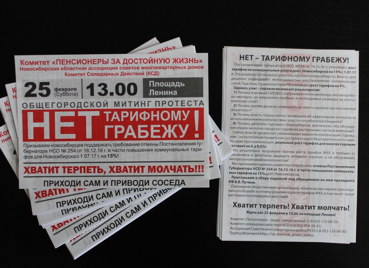 2017-02-15 10:34:28 ЛИСТОВКИ! НА МИТИНГ ПРОТЕСТА 25 ФЕВРАЛЯ! НУЖНА ПОМОЩЬ! Самая главная задача сейчас - информационная. 90% жителей Новосибирска просто не знали о митингах, прошедших 28 января.