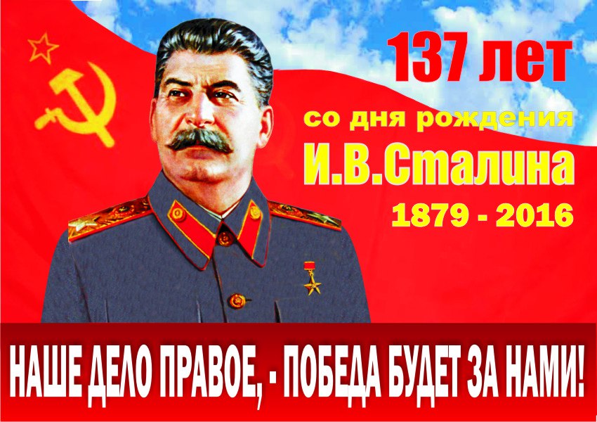 2016-12-19 05:08:49 Красные гвоздики товарищу Сталину Дорогие друзья! 21 декабря, в 12:30 – 13:30, в Новосибирске, на площади Ленина, у памятника В.И. Ленину, состоится мероприятие, посвящённое 137-й годовщине со дня рождения И.В. Сталина. Сначала состоится пикет, на котором мы развернём цветные баннеры и портреты И.В. Сталина и красные знамёна, а затем, примерно в 13:15, мы возложим цветы к портрету И.В. Сталина у памятника В.И. Ленину. Организаторы мероприятия – Всесоюзная Коммунистическая партия Большевиков (ВКПБ) и Российская коммунистическая рабочая партия (РКРП), а также наши сторонники и сочувствующие. Товарищи, приходите тоже, приводите своих друзей и берите с собой цветы! Читать и комментировать Комментариев: 0