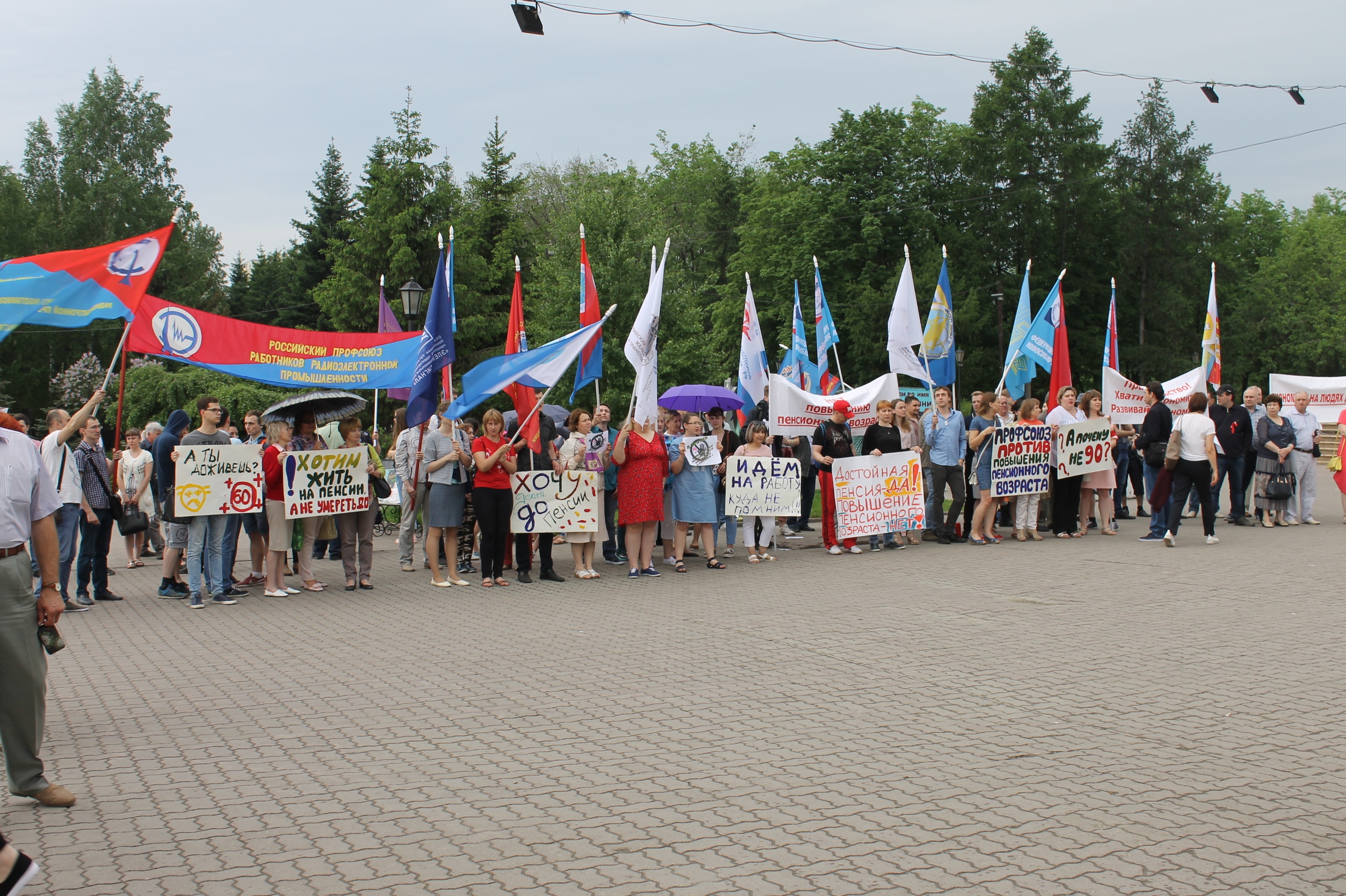 2018-06-09 16:12:09 ПРОФСОЮЗЫ - ПРОТИВ! 9 июня 2018 года представители организаций, входящих в областную Федерацию профсоюзов Новосибирской области (региональное отделение ФНПР) провели с 17.30 в Первомайском сквере города пикет против планов правительства России по повышению пенсионного возраста. Всего было около 60-ти участников.