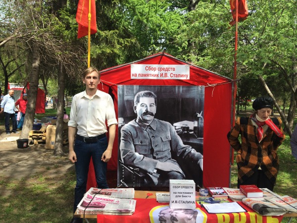 Чуть позже, к палатке коммунистов подошел депутат Госдумы от КПРФ – Ганзя В.А. Она тоже была не против фотографии на фоне генералиссимуса, однако жертвовать деньги на бюст депутат не решилась.