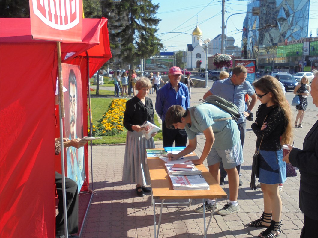 2016-08-06 08:29:15 Сталинский пикет 4 августа, в Новосибирске, у Дома Ленина, состоялся очередной пикет по сбору подписей за памятник И.В. Сталину. Погода нам благоприятствовала – было солнечно. Без преувеличения, сегодня подходила и ставила подписи практически одна молодёжь (смотрите наш фоторепортаж). И ещё. Один наш товарищ привёз собранные подписи из своего родного села. Значит, за памятник Сталину активно голосует и молодежь, и село вместе с горожанами. К уже собранным 2 700 подписям сегодня прибавилось ещё 162 голоса жителей Новосибирска и Новосибирской области. Следующий пикет состоится также в четверг, 11 августа, в 17.00-19.00, там же, у Дома Ленина. Приходите и приводите своих друзей! Мы победим – памятник Сталину будет!
