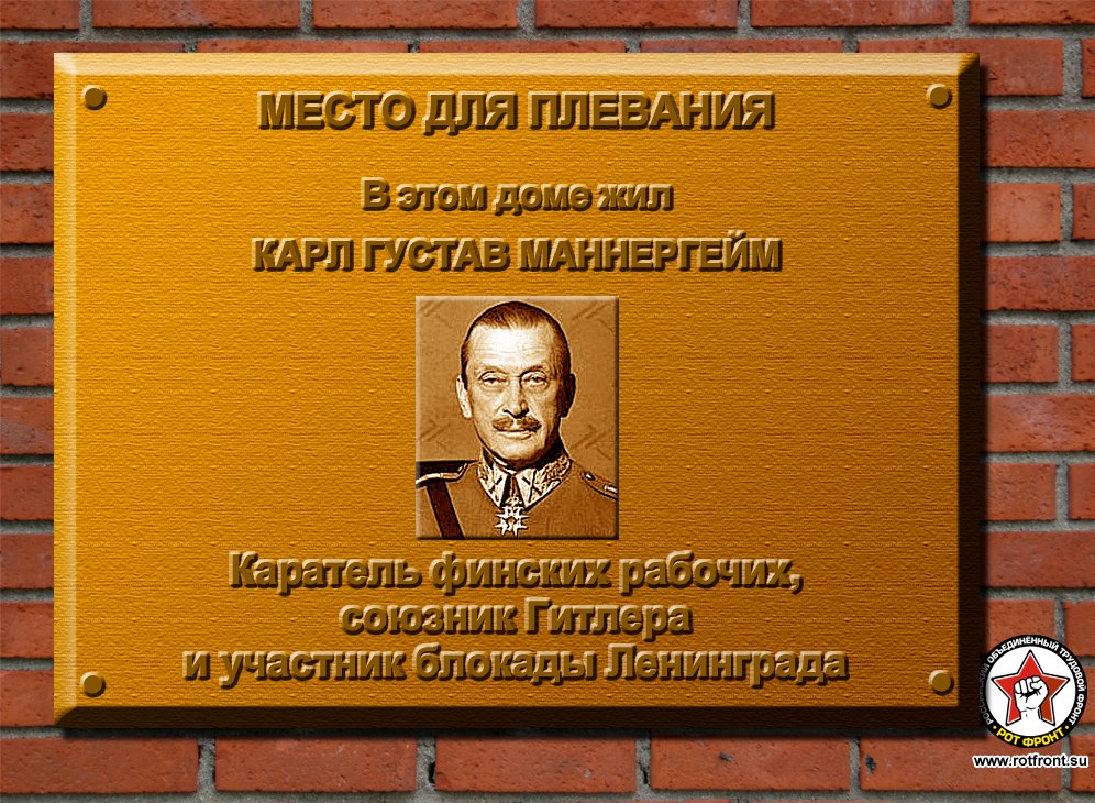 2016-06-19 15:51:02 «Мясник» дождался-таки доски Итак, мемориальную доску барону Карлу Густаву Маннергейму в России всё-таки повесили. Испоганили ею фасад здания по улице Захарьевской в Петербурге, где располагается Военный инженерно-технический университет. Произойти такое могло, конечно, только в Петербурге, а никак не в Ленинграде. В Ленинграде твёрдо стояли на той позиции, которую нынешняя буржуазная пропаганда деликатно именует «неоднозначным отношением». Дескать, увековечили память славного финского маршала, а в дореволюционные времена блестящего царского генерала, и это встретило «неоднозначное отношение» некоторых протестующих.