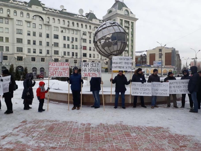 По словам организатора акции Павла Коваля, работники не получают зарплату уже третий год. Причиной они называют – умышленное банкротство предприятия. Предприятие принадлежит «Росгеологии» и «Геотек Холдингу», второго собственника как раз и обвиняют в задержках, и преднамеренном доведении предприятия до банкротства и нерентабельности.