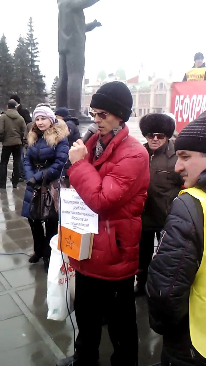2013-03-24 19:16:15 23 марта в Новосибирске прошел митинг против роста тарифов ЖКХ. 23 марта в Новосибирске прошел митинг против роста тарифов ЖКХ, организованный комитетом «Пенсионеры – за достойную жизнь» и лидером новосибирского отделения партии «Патриоты России» А. Мухарыциным. На митинге, состоявшемся на площади Ленина, присутствовало около 300 человек. АКМ и РКРП также приняли участие в данном мероприятии, рассматривая его как новосибирский «социальный марш», который должен был пройти в этот день в ряде городов России. Также участвовали в митинге представители КПРФ, ВКПБ, «Другой России» и депутат ГД от «Справедливой России» Илья Пономарев. Интересно отметить, что большинство выступающих, даже весьма далеких от левых взглядов, говорили о том, что в бедах народа виноват олигархический капитал, а в резолюцию было включено требование национализации богатств страны. В «свободном микрофоне» выступил представитель РКРП Олег Мазепо, были распространены газеты АКМ и РКРП «Красный реванш» и газета АКМ «Контрольный выстрел... Читать и комментировать Комментариев: 0